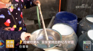 2019年7月8日,央視7套《致富經》欄目對豆黃金做了專題報道,以下為欄目截圖。豆黃金揭完腐竹后的豆漿不要了,被周圍農戶爭相拉走!